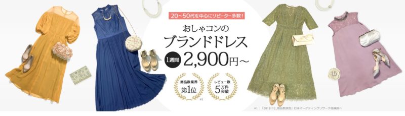 おしゃれコンシャスのレンタル基本料金では、6泊7日 2,900円〜(ドレス単品 / 税別)となります。